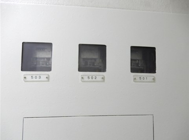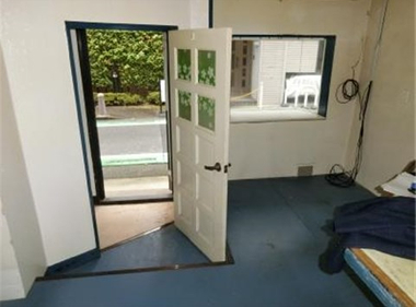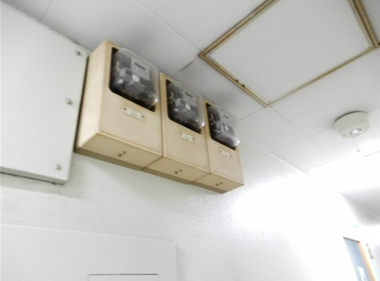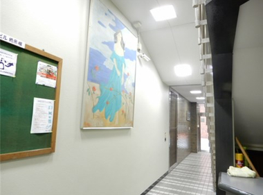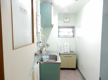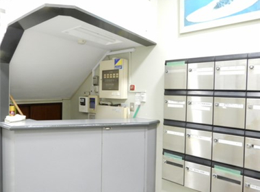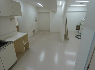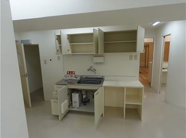 共用FAXコピー機(@10円) 防犯カメラ キッチンに食器と湯沸かしポットと冷蔵庫あり